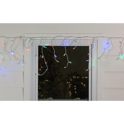 Add a festive splash of color with these multi-hued holiday icicle lights! These lights are synonymous with the colorful festive scene! Use them for your holiday decor, a wedding, or for everyday household use. LED bulbs are cool to the touch and use much less energy than a traditional incandescent bulb.Product Features: Color: multi-color bulbs / white wire Multi-color consists of red, green, blue and amber bulbsNumber of bulbs on string: 100Bulb size: concave wide angleSpacing between each bulb: 3″Spacing between each drop: 3.5″Lighted length: 5.5′ Total length: 6.75’12” lead cord (from the plug to the first bulb)4″ tail cordAdditional Product Features:LED lights use 90% less energy Durable non-glass replaceable bulbsCool to the touch Strand contains 2 rectifiers, this eliminates the shimmer and shake in the light setUL listed for indoor or outdoor useIf one bulb burns out, the rest will stay litLights are equipped with Lamp Lock feature, which makes them replaceable, interchangeable and keeps them from falling outComes with replacement bulbs and spare fusesContains end-to-end connectors which allows you to connect up to 43 sets together (not to exceed 210 watts)Wire gauge: 22120 volts, 60 hertz, .04 amps, 4.8 watts