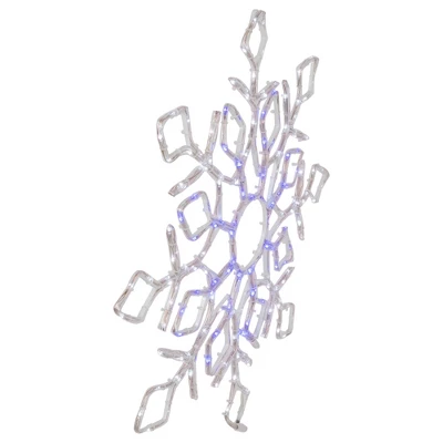 Add a pop of color to your windows with this blue and white holiday snowflake window silhouette. This charming decoration features a beautiful snowflake silhouette with a stunning display of LED lights. Add this decoration to your windows for a bright, festive touch of the holiday spirit. Product Features:Tube color: clearBulb color: white and blueWhite frame Number of bulbs: 196Bulb size: micro fairyBulb type: LED52” white lead cordAdditional Product Features:Super bright bulbsUL certified and approved for indoor or outdoor useIf one bulb burns out, the rest will stay lit Contains 1 AC adaptor plug with 6 function control boxPush button function controlDurable non-replaceable plastic bulbsCool to the touchWire gauge: 24Input: 120 volts, 60 hertz, .11 ampsOutput: 3.5 volts, 0.9 ampsDimensions: 23”H x 23.5”W x .5″DMaterial(s): plastic/wire/metal