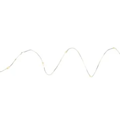 These warm white micro fairy lights radiate a bright, sparkly hue, perfect for complementing any color scheme. The ultra-slim pliable wire makes these lights incredibly versatile. They can easily be stretched and shaped to accommodate your decorating needs. The battery operation means that there is no electrical outlet necessary to power the lights. Product features:Color: warm white bulbs / silver-plated copper wireNumber of bulbs on string: 50Bulb size: micro fairySpacing between bulbs: 4″Lighted length: 16’Total length: 17’12” lead cordAdditional product features:LED lights use 90% less energyBulbs stay cool to the touchNon-replaceable bulbsIf one bulb burns out, the rest will stay litFor indoor use onlyCannot connect multiple sets togetherRequires 3 ‘AA’ size batteries – not includedOn/off switch on battery pack