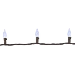 Get ready to brighten up your holiday season with these stunning LED Faceted C6 holiday lights! These versatile lights are perfect for both indoor and outdoor use, allowing you to add a festive touch to any space in your home or yard. These lights are durable and easy to install, making decorating a breeze. The faceted C6 bulbs emit a warm and welcoming glow, creating a cozy and inviting atmosphere. With many bulbs to a strand, you’ll have plenty of light to create a beautiful display that will impress your family and friends. Get your home ready for the holidays with these LED string lights!Product Features:Color: pure white faceted bulbs / brown wire Number of bulbs on string: 50Bulb size: C6Spacing between each bulb: 4″Lighted length: 23′ Total length: 24.25’12” lead cord (from the plug to the first bulb)4″ tail cordAdditional Product Features: UL certified and approved for indoor or outdoor use If one bulb burns out, the rest will stay litLights are equipped with a lamp lock feature, which makes them replaceable, interchangeable and keeps them from falling outReplacement bulbs, flasher bulbs, and spare fuses are includedContains end-to-end connectors which allow you to connect up to 5 sets together (not to exceed 210 watts)Wire gauge: 22120 volts, 60 hertz, 0.04 amps, 4.8 wattsMaterial(s): plastic/wire