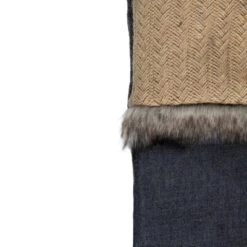- Chambray Front Resembles Denim With A Braided Burlap And Faux Fur Cuff