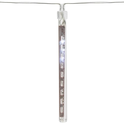 These light tubes are a mesmerizing and enchanting addition to your holiday decorations. Each set includes 10 individual light tubes that mimic the appearance of dripping icicles. What sets these lights apart is their innovative LED technology that simulates the gentle, continuous fall of snowflakes. These lights are a brilliant fusion of modern technology and timeless holiday charm that will transform any space into a winter wonderland.Product Features:Number of LED lights per tube: 10Double-sided tubesLight color: cool whiteWire color: clearCool white has a very slight blue tint, it has the look of ice and is used to create a true icy winter scene Spacing between each tube: 19″Lighted length: 14.25’Total length: 30.75’Lead cord: 16.5’Additional Product Features:Includes weather resistant AC-DC adapter UL certified and approved for indoor or outdoor useCannot connect to any other lighted items Input: 120 volts, 60 hertz, 0.30 amps, 36 wattsOutput: 5 volts, 1.20 amps, 6 wattsDimensions: 6.5″ high x 0.5″ diameterMaterial(s): plastic bulbs/wire