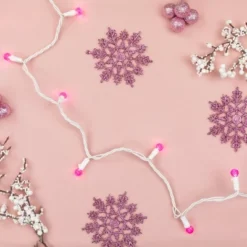 Deck the halls with a rosy glow this holiday season with these pink LED G12 Berry holiday lights. These charming lights bring a touch of warmth and holiday charm to any space. Whether you’re trimming the tree or accenting your home, the soft pink hue adds a delightful twist to your seasonal decor.Product Features:Color: pink bulbs / white wireNumber of bulbs on string: 50Bulb size: G12Spacing between each bulb: 4″Lighted length: 16’Total length: 16.5’5″ lead cord4″ tail cordAdditional Product Features:LED lights use 90% less energy Durable non-glass replaceable bulbsBulbs stay cool to the touch Strand contains a rectifier which eliminates the shimmer and shake in the light setUL certified and approved for indoor or outdoor use If one bulb burns out, the rest will stay litLights are equipped with Lamp Lock feature, which makes them replaceable, interchangeable and keeps them from falling outComes with replacement bulbs and spare fusesContains end-to-end connectors which allows you to connect multiple sets together (not to exceed 210 watts)Wire gauge: 22120 volts, 60 hertz, .00 amps, 2.4 watts