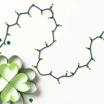 Brighten up your holiday celebrations with this 50-count mini holiday light set. Featuring clear bulbs with green tips, they add a classic touch to your holiday decor while also being perfect for St. Patrick’s Day festivities. Their versatile design makes them a great choice for any occasion needing a touch of festive cheer.Product Features:Color: clear bulbs with green tips / green wireNumber of bulbs on string: 50Bulb size: miniBulb type: incandescentSpacing between each bulb: 2.5″Lighted length: 10’Total length: 11.25’12” lead cord3″ tail cordAdditional Product Features:UL certified and approved for indoor or outdoor useIf one bulb burns out, the rest will stay litLights are equipped with Lamp Lock feature, which makes them replaceable, interchangeable and keeps them from falling outComes with replacement bulbs, flasher bulbs and spare fusesContains end-to-end connectors which allow you to connect multiple sets together (not to exceed 210 watts)Wire gauge: 22120 volts, 60 hertz, .17 amps, 20.4 watts